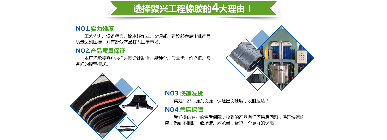 衡水聚興工程橡膠有限公司,位于河北省衡水市榕花街,石德高速,石德鐵路,京九鐵路在此交匯,106國道,石黃高速由境內(nèi)穿過。得天獨厚的地理位置為公司的發(fā)展創(chuàng)造了良好的交通條件。本廠工藝先進、設(shè)備精良、流水線作業(yè)、交通部、建設(shè)部定點企業(yè)產(chǎn)品質(zhì)量達到國標(biāo),并有部分產(chǎn)品打入國際市場、我廠主要生產(chǎn)止水帶、橋梁支座、輸送帶、伸縮縫、托滾高壓膠管,并按圖加工各種橡膠制品。同時本廠還承接客戶 ...